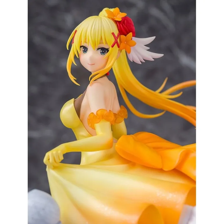 Descubre la elegancia y el detalle impresionantes de la estatua de KonoSuba: God’s Blessing on This Wonderful World! 3, versión Fairy Tale de Darkness. Con una altura aproximada de 28 cm, esta figura está fabricada en PVC de alta calidad y captura a Darkness en un vestido amarillo brillante, complementado con un adorno en el cabello de flores rojas y amarillas.