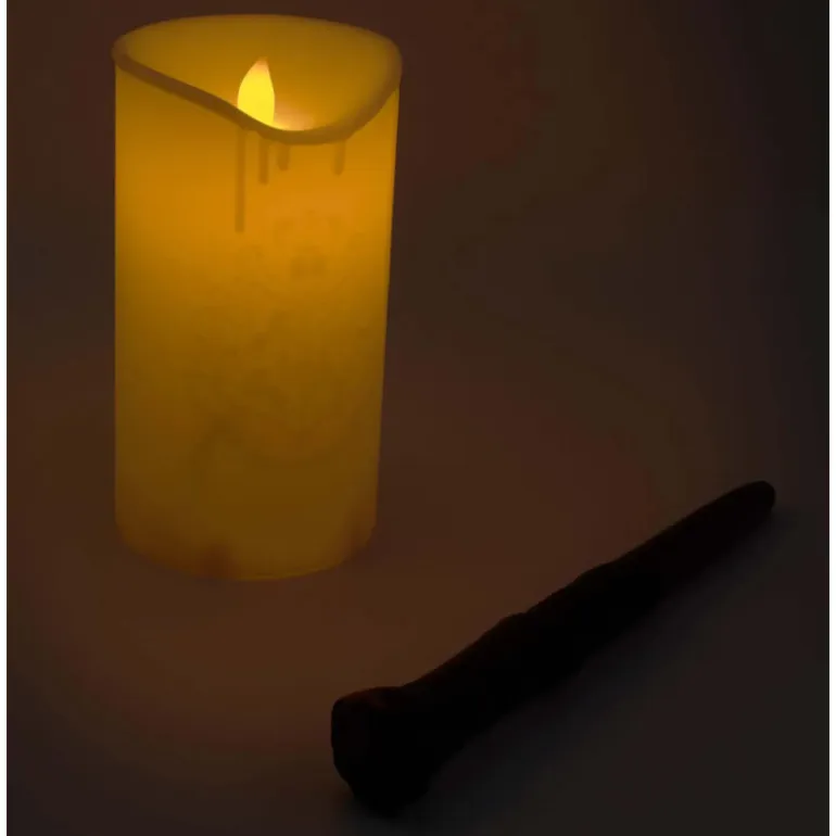 Y es que esta lámpara oficial de la saga tiene forma de vela y se enciende con una varita, así que cuando te toque encencerla te sentirás como uno más de los magos que pululan por Hogwarts. Fíjate en los detalles porque la vela tiene el escudo de Hogwarts en relieve, y la varita es una réplica de la de Harry (pero esta además tiene control remoto). La luz de esta lámpara vela le da un aspecto muy sugerente y además como es LED gasta muy poco. Mide aproximadamente 15 cm de alto y funciona con dos pilas AAA (que no vienen incluidas).