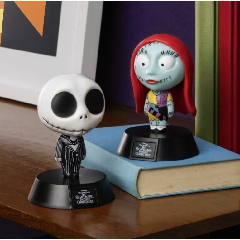 Descubre esta encantadora mini lámpara de ambiente inspirada en Sally, un icónico personaje de «Pesadilla Antes de Navidad«. Con un diseño detallado, la figura muestra a Sally con su característico pelo rojo y costuras que decoran su piel azulada. La lámpara tiene una base negra con el logotipo de la película, lo que la convierte en un complemento perfecto para cualquier colección o como elemento decorativo.
