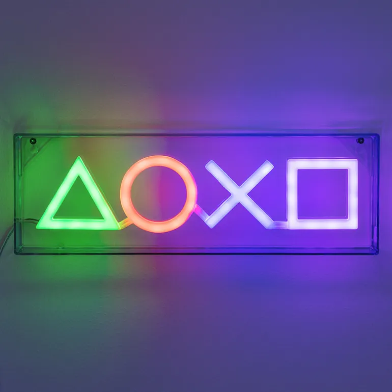 Descubre la Lámpara LED con estilo neón que destaca los icónicos símbolos de PlayStation: triángulo, círculo, equis y cuadrado. Este producto con licencia oficial de Paladone es perfecto para añadir un toque de originalidad a cualquier espacio.