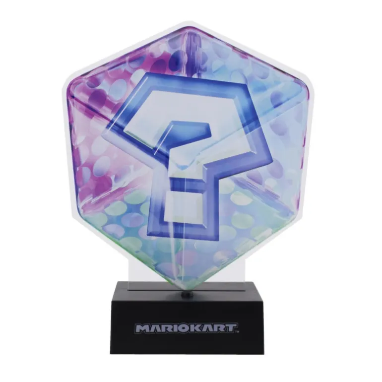 Su diseño en forma de bloque de interrogación es un verdadero icono de la serie Mario Kart, otorgándole a la lámpara un carácter distintivo y divertido. Además, tiene una base sólida y estable que le permite sostenerse en cualquier superficie sin peligro de caídas.