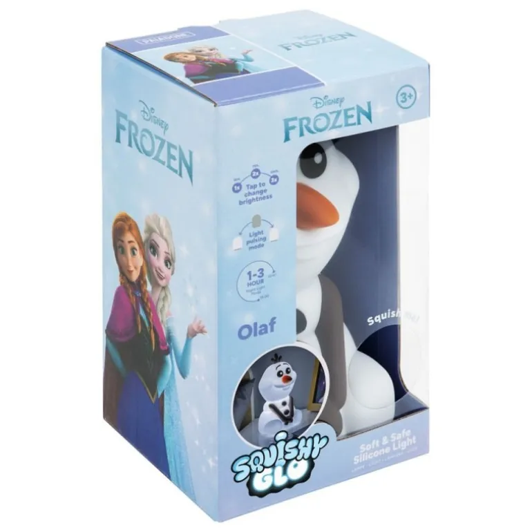 La Lámpara Squishy Glo Olaf es el complemento ideal para los admiradores de Frozen: El Reino del Hielo. Con una altura de aproximadamente 15 cm, Olaf, el querido muñeco de nieve, cobra vida en una versión suave y brillante.