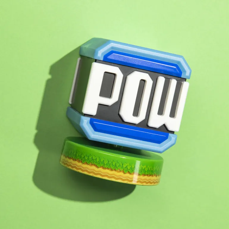 Una lámpara que reproduce a la perfección este mítico bloque Pow que provoca un terremoto al ser golpeado. Le dará a tu habitación o salón un aspecto realmente sorprendente tanto cuando está encendida como apagada. Mide aproximadamente 10 cm y da una luz suave ideal para crear ambiente o como luz nocturna. Funciona con dos pilas AAA (no incluídas) y cuenta con una peana con el aspecto de las plataformas de este legendario videojuego.