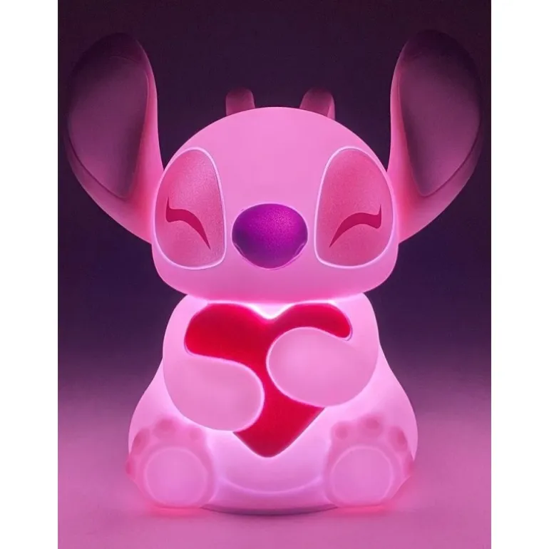 Descubre la lámpara táctil de Disney Angel de Enesco, una pieza encantadora y funcional que iluminará cualquier espacio. Con su diseño en forma de Angel, este adorable personaje de Lilo & Stitch, irradia un brillo suave y acogedor. La lámpara es de color rosa y presenta detalles pintados con precisión, como los grandes ojos cerrados y un tierno corazón rojo que sostiene entre sus patas.
