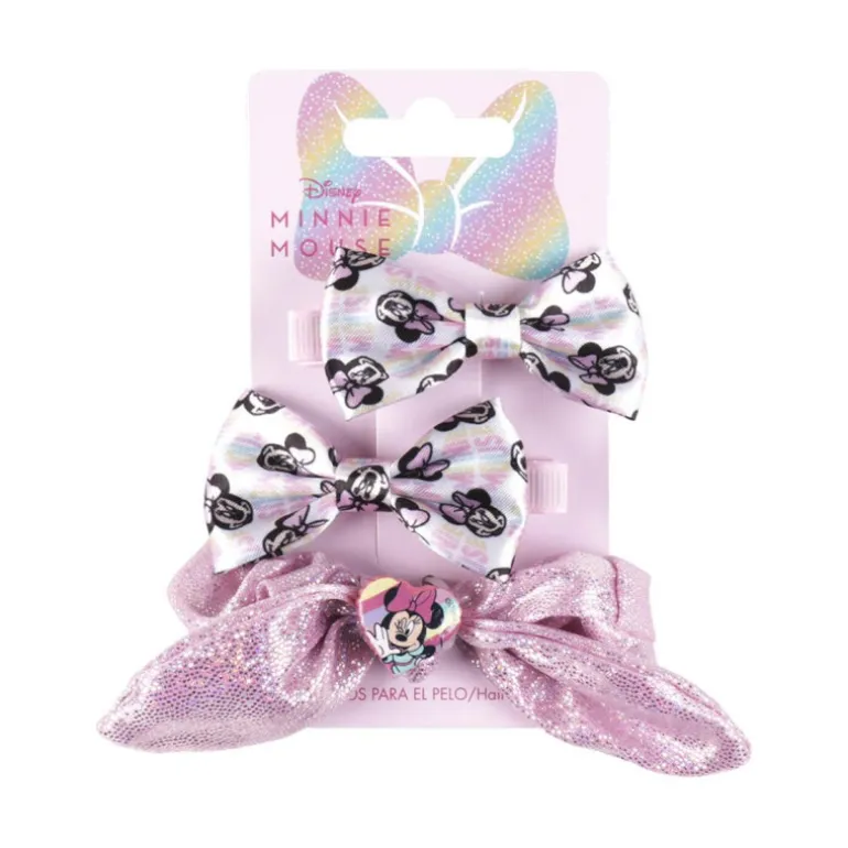 Los lazos para el pelo Minnie son accesorios de gran calidad y diseño, perfectos para las pequeñas fans de Minnie Mouse. Este set incluye 3 lazos en color sin color, lo que los hace versátiles y fáciles de combinar con cualquier atuendo.