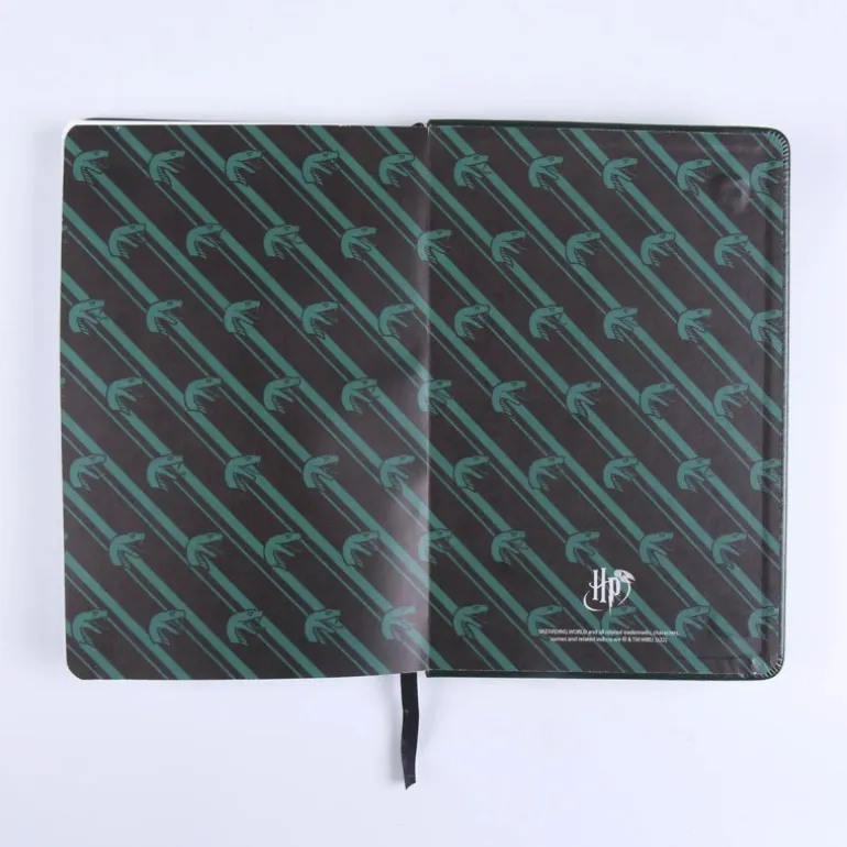 Una libreta que destaca nada más la ves por su color verde y basado en la casa Slytherin con el escudo de la casa. Una libreta que puedes llevar en cualquier lado y con la que estarás deseando dibujar o escribir algo y así tener una excusa para mostrarla. En su interior, podrás encontrar un montón de hojas en blanco.