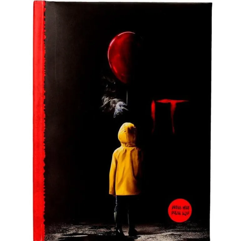 ¡Una auténtica pasada de libreta premium de un clásico del terror como It! Es de tamaño A5 (14,8 cm x 21 cm), cuenta con tapa dura y un diseño espectacular, con luz incorporada.