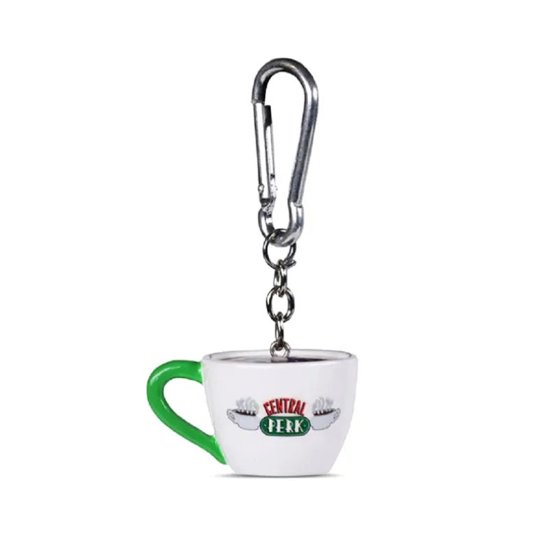 Está fabricado en polirresina y es una reproducción en 3D de una tacita de café, con el logo de esa mítica cafetería en la que se reúne a menudo este grupo de amigos neoyorquinos, el Central Perk. Tiene un tamaño aproximado de unos 4 cm y sorprende por la calidad de su mosquetón, así que además de como llavero podrás colgarlo sin problemas de bolsos o mochilas.