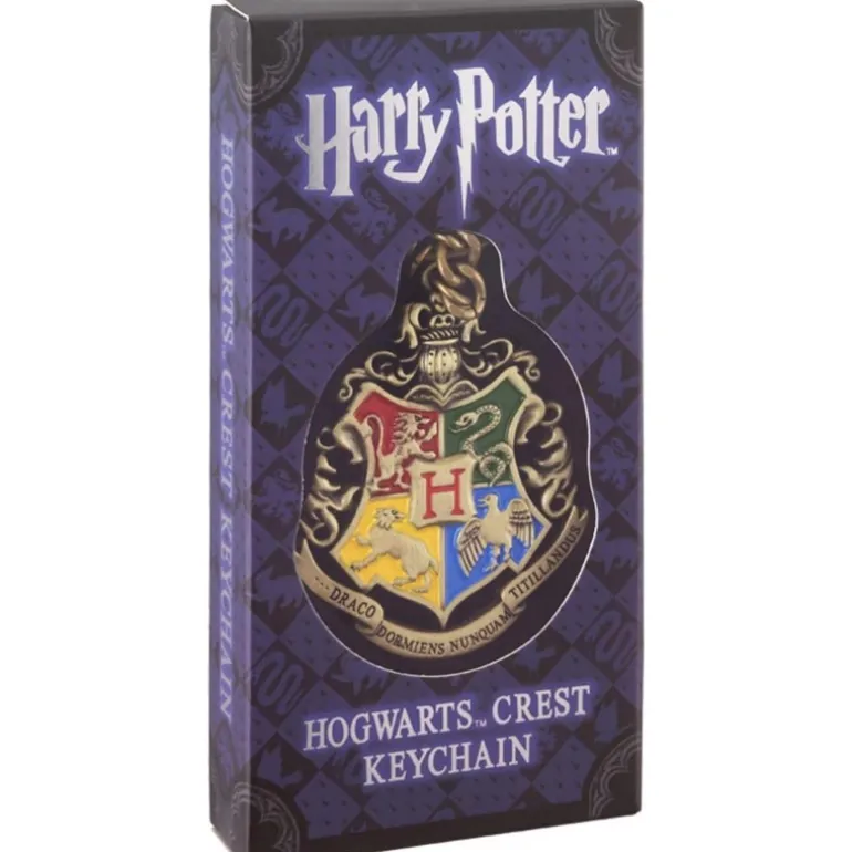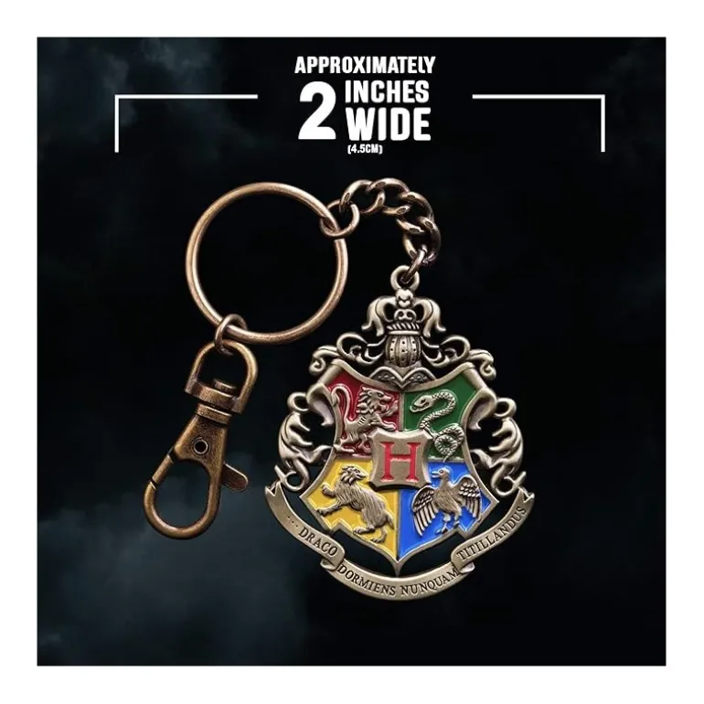 Descubre el llavero Hogwarts de Harry Potter, una exquisita pieza de colección elaborada por The Noble Collection. Este llavero presenta el icónico escudo de Hogwarts, con detalles en relieve que capturan la esencia de cada casa: Gryffindor, Slytherin, Hufflepuff y Ravenclaw, representadas por sus colores característicos. El diseño, en tonos dorados envejecidos, resalta su identidad mágica.