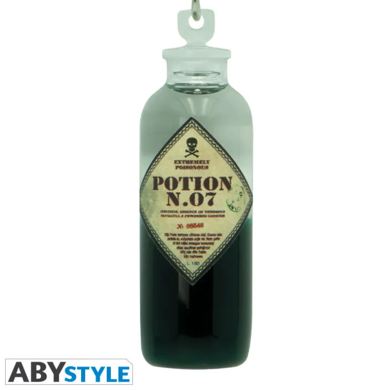 Es un llavero fabricado en PVC de alta calidad, con un tamaño razonable y cómodo de llevar en el bolsillo por que pesa poquísimo. Y no te pierdas su diseño, que representa a la poción N.07. Mide aproximadamente 6 cm y sorprende por la calidad de su anilla de la que fácilmente se sacan o meten las llaves y que te permitirá colgarlo sin problemas de bolsos o mochilas.