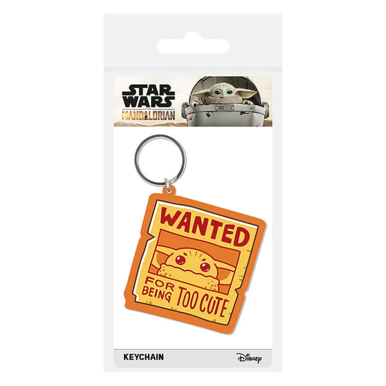 Descubre este encantador llavero con diseño de Grogu de la serie The Mandalorian. El llavero presenta un cartel de «Wanted» en tonos naranjas y rojos, con la adorable imagen de Grogu, también conocido como «Baby Yoda», y la frase «For Being Too Cute«. Fabricado por Pyramid International, este producto es ideal para los seguidores de Star Wars que buscan un accesorio práctico y con un toque de humor.