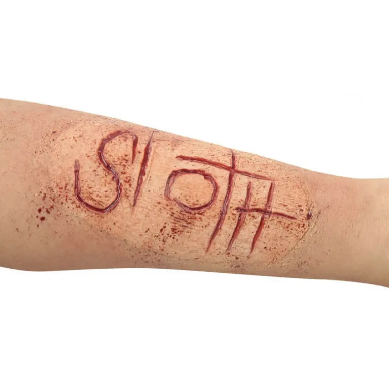Maquillaje FXs de Letras Pereza. Con este maquillaje de efectos especiales parecerá que llevas rasgada en la piel la palabra Sloth (Pereza en Castellano). Perfecto en fiestas del terror como Halloween. ¡Compra con total seguridad y confianza en , un comercio online que cumple con todas las normativas de la U.E.!