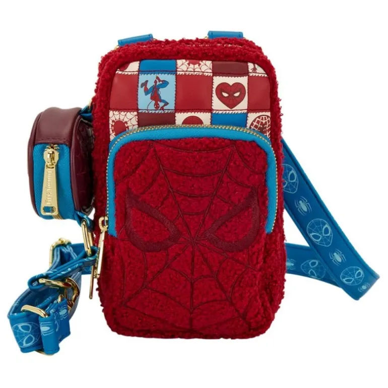 Descubre la elegante bandolera con cartera de Spider-Man de Marvel by Loungefly, el accesorio perfecto para los fans del superhéroe. Esta bandolera, fabricada en cuero PU de alta calidad, presume de un diseño llamativo en tonos rojos y azules, decorado con el icónico emblema y motivos de Spider-Man. Su interior está forrado con un vibrante estampado azul y cuenta con una correa ajustable adornada con detalles del personaje.