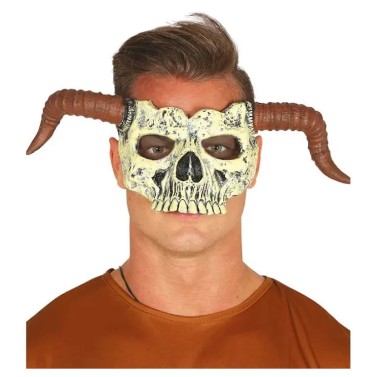 Media Careta de Calavera o Esqueleto con Cuernos. Perfecto en fiestas del terror como Halloween. ¡Compra en un e-commerce como y apoya el comercio español!