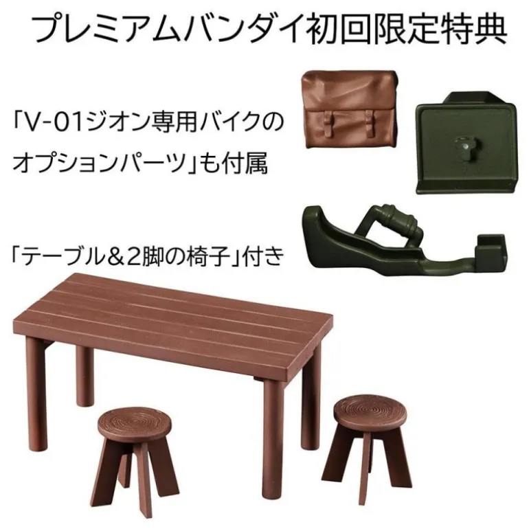 El set incluye tres figuras con trajes de temática militar, complementadas con una motocicleta de diseño robusto en tonalidades verdes y detalles metálicos, ideal para recrear escenas de acción. Además, cuenta con accesorios como una mesa, sillas y mochilas, aportando un contexto realista y versátil a tus exhibiciones.