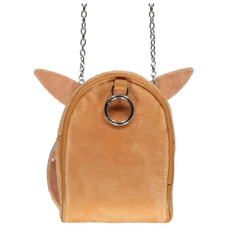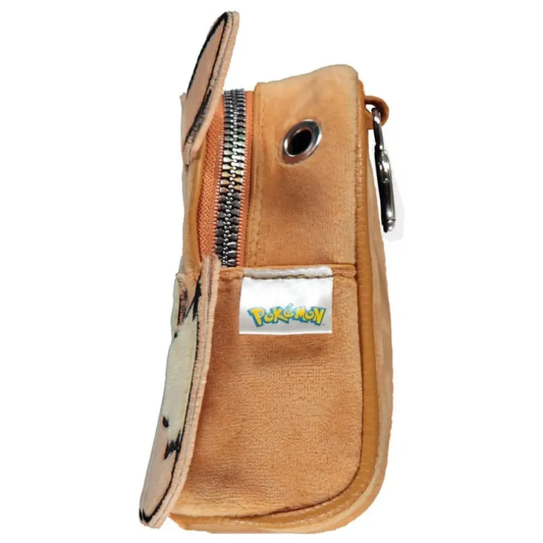Descubre el Microbolso Pokémon con un adorable diseño de Eevee en 3D, perfecto para los amantes de los accesorios únicos y con estilo. Este bolso presenta a Eevee de espaldas, destacando sus orejas y cola tridimensionales sobre un material suave al tacto similar al terciopelo, en tonos marrones que evocan a este querido personaje de Pokémon.