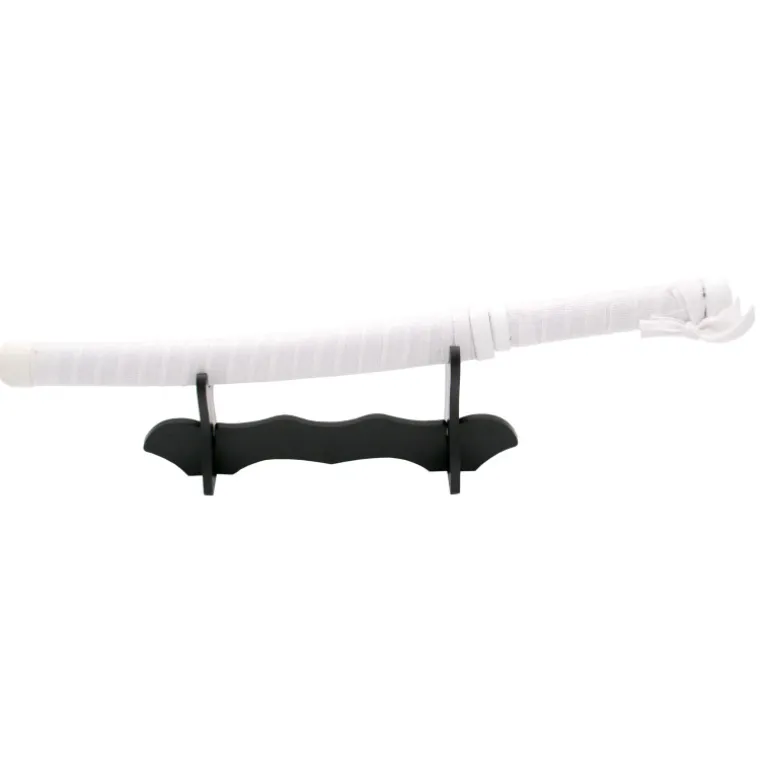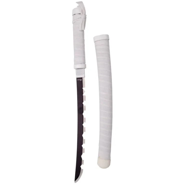 Es una réplica de la espada que lleva Inosuke Hashibira durante los episodios que mide un total de 40 cm y con la hoja de acero sin filo, la hoja está dentada, mango con encordado blanco, vaina con encordado blanco.