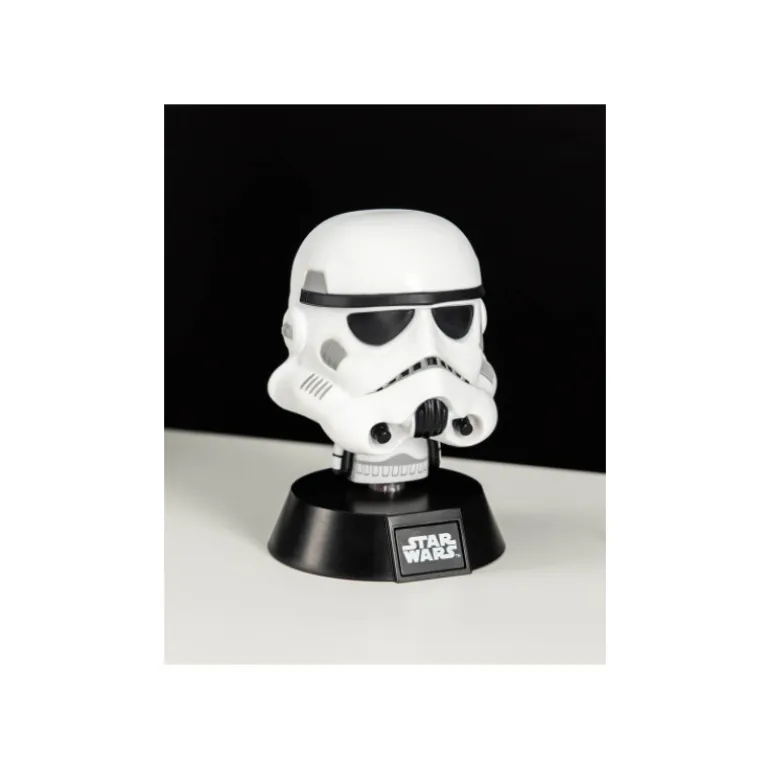 ¡Una pequeña lámpara de Stormtrooper, con licencia oficial de Disney-Star Wars! Mide aproximadamente 10 cm de alto y da una luz de ambiente realmente agradable, ideal para usar como quitamiedos.