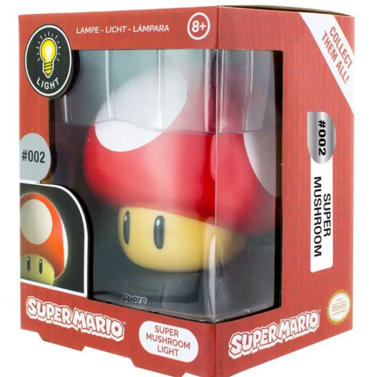 Esta preciosa lámpara de Super Mario dará ambiente a cualquier habitación tanto de día como de noche, y además tendrás un Súper Champìñón rojo como ese que tantas veces nos hemos alegrado de encontrar en este mítico videojuego de Nintendo.