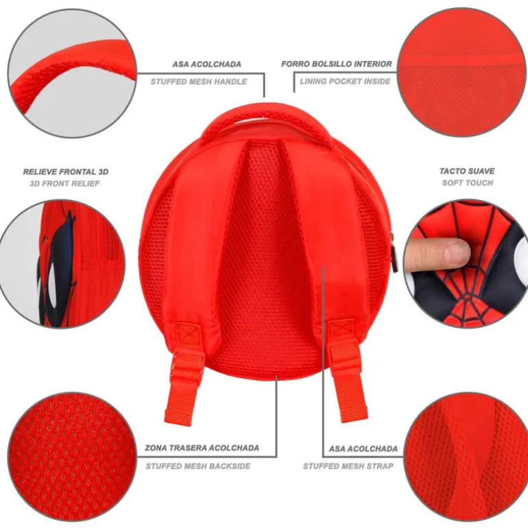 La mini mochila guardería 3D Spiderman Marvel es un producto de alta calidad que garantiza la satisfacción de los más pequeños. Con un diseño redondo y un relieve frontal en 3D de Spiderman, esta mochila es perfecta para los amantes de los superhéroes.