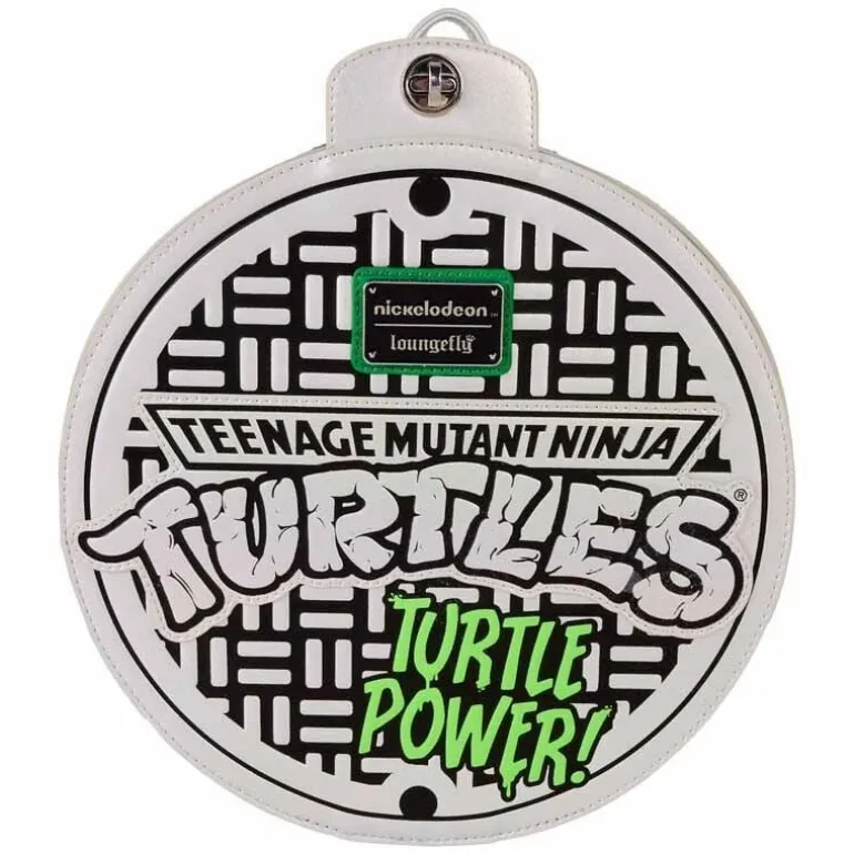 La mini mochila LOUNGEFLY Tortugas Ninja es un artículo imprescindible para los auténticos seguidores de estos héroes. Su diseño circular imita a la perfección una tapa de alcantarilla, con detalles en blanco y negro que destacan el icónico logo de las Tortugas Ninja. En el exterior, el contraste del verde vibrante con el negro aporta un toque moderno y llamativo. La parte trasera de la mochila está equipada con correas ajustables de color verde y negro, asegurando comodidad y estilo en cada uso.