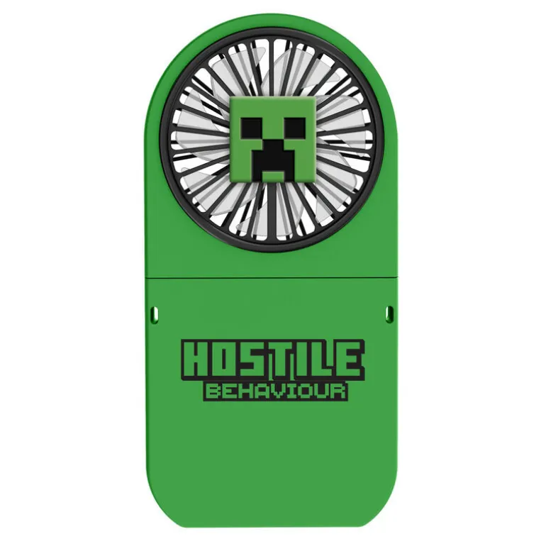 ¡Mantente fresco con el Mini Ventilador Plegable Minecraft! Con licencia oficial, este accesorio es perfecto para los seguidores del icónico videojuego. Su diseño inspirado en el Creeper, con la frase Hostile Behaviour, le da un toque único y llamativo.