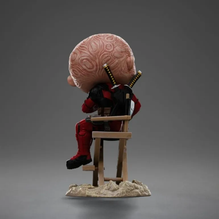 Descubre la increíble minifigura de Deadpool Sin Máscara de la renombrada línea Mini Co. de Iron Studios. Esta figura de PVC mide aproximadamente 13 cm de altura y presenta un diseño detallado y único que captura la esencia del antihéroe más sarcástico de Marvel. Deadpool está sentado de manera relajada en una silla de director, añadiendo un toque humorístico y distintivo a la colección.