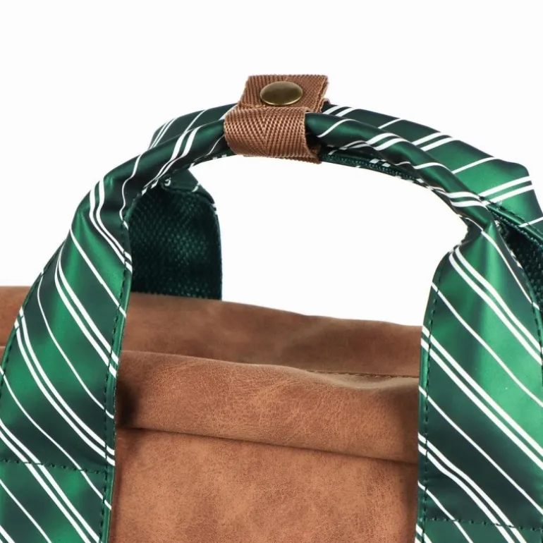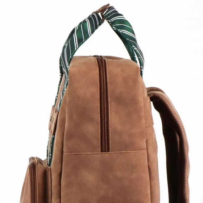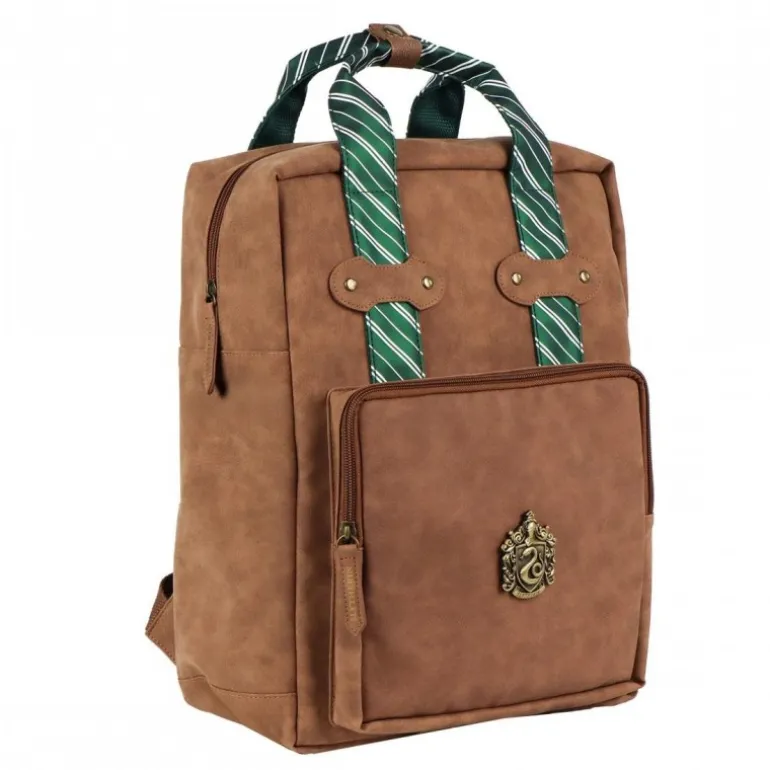 Descubre la mochila casual de polipiel inspirada en la casa de Slytherin de Harry Potter. Esta elegante mochila marrón está confeccionada al 100% en poliuretano, lo que le otorga un acabado similar al cuero, resistente y de alta calidad.