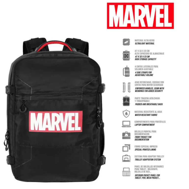 La Mochila de Viaje Mercury Grande Negro Marvel Comic es una solución de alta calidad para aquellos que buscan una forma eficiente y estilizada de viajar. Con un diseño que combina funcionalidad y estilo, esta mochila se presenta como una alternativa ideal a las tradicionales maletas de cabina, especialmente diseñada para quienes desean llevar lo necesario sin sacrificar el espacio o la comodidad.