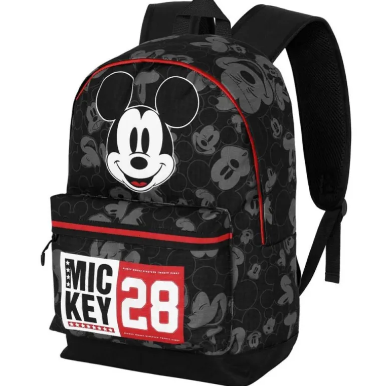 La mochila Disney Mickey Mouse Year HS FAN 2.2 es el complemento perfecto para los seguidores de Mickey Mouse. Diseñada en un elegante color negro, presenta un estampado de Mickey en tonos grises con detalles en rojo que resaltan su estilo. Confeccionada en material Ripstop de alta resistencia, es repelente a los líquidos, ideal para el uso diario. Su interior está forrado y cuenta con un bolsillo dedicado para dispositivos electrónicos.