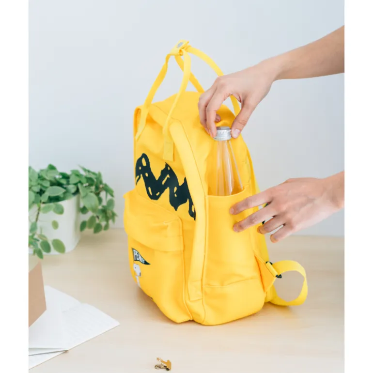 La Mochila Everyday Snoopy es un producto que destaca por su practicidad y su divertido diseño, que sin duda capturará la atención de los entusiastas de Snoopy. El diseño evoca al eterno jersey de Carlitos en las tiras de Peanuts, con su greca negra sobre un fondo amarillo.