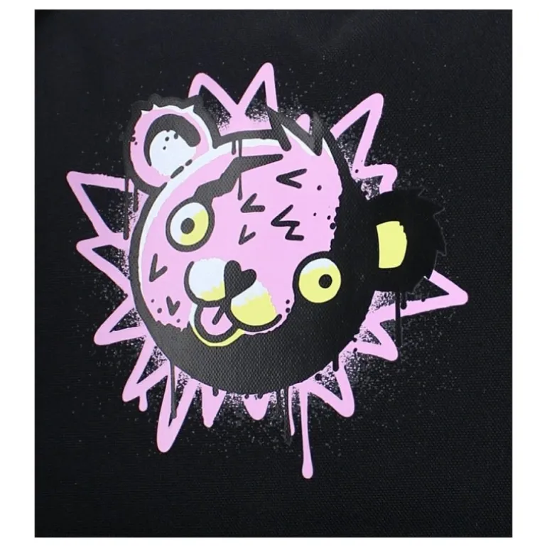 El diseño en 100% poliéster garantiza una resistencia y durabilidad excepcionales, mientras que su licencia oficial asegura autenticidad y calidad. El vibrante dibujo de un oso en tonos rosa y negro le da un toque divertido y original, haciendo que destaque entre otras mochilas.