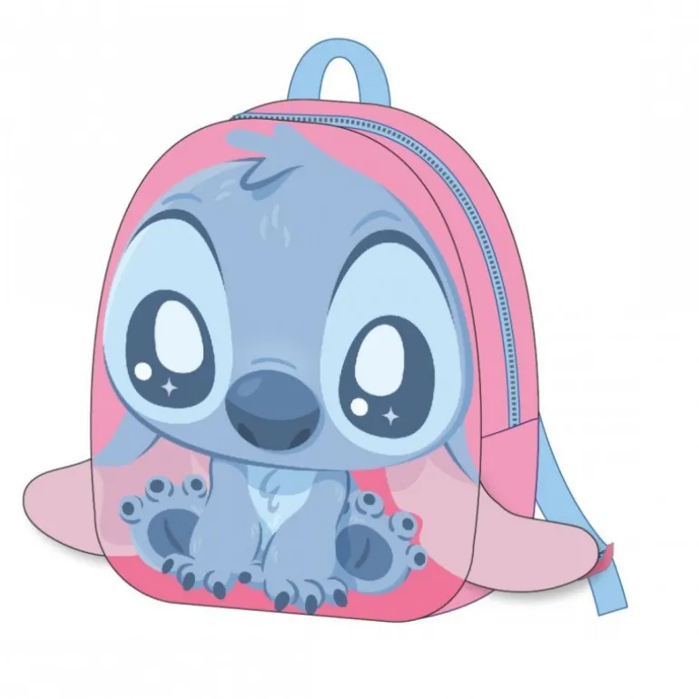 Descubre la mochila de guardería ideal para los más pequeños con el adorable diseño de Stitch. Esta mochila presenta una encantadora combinación de colores pastel, con un predominante rosa suave que da vida al personaje en un estilo de peluche. La forma de la mochila simula la cara de Stitch, mostrando sus grandes ojos expresivos y una dulce sonrisa que encantará a cualquier niño.