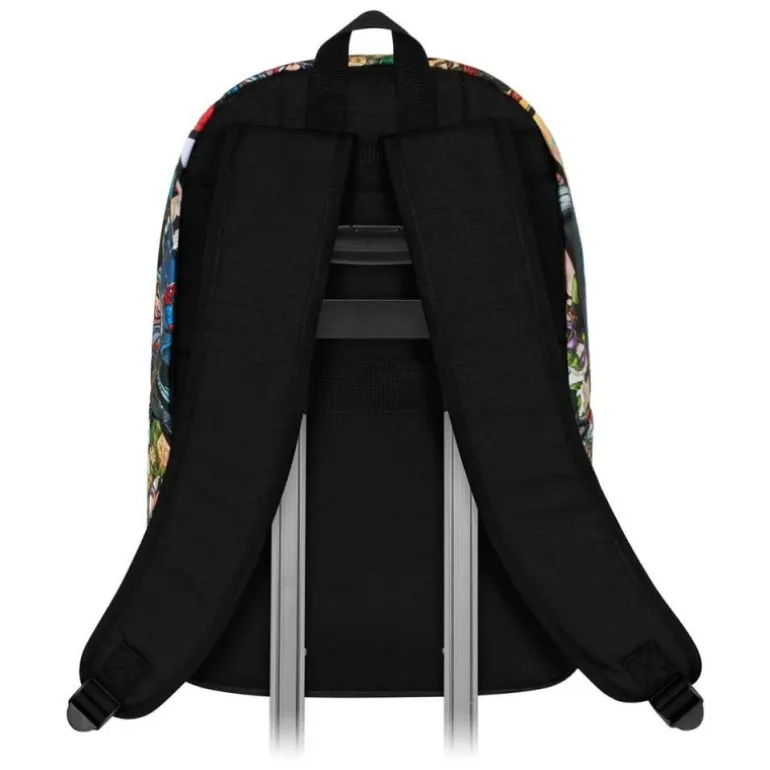 Explora tu mundo con la mochila Spiderman Panels de Marvel, una pieza vibrante y funcional. Esta mochila multicolor destaca con un diseño dinámico de viñetas de cómic que captura la esencia del trepamuros. Su material exterior de alta resistencia y repelente a líquidos (Ripstop) asegura durabilidad y protección contra imprevistos. En su interior, un forro decorado con motivos de cómic y un bolsillo para dispositivos electrónicos la convierten en la elección perfecta para el día a día. Las correas acolchadas y ajustables garantizan comodidad, mientras que la cinta para el trolley hace de esta mochila una compañera ideal para viajar. Con dimensiones de 18 x 31 x 44 cm, es el regalo original y práctico para los apasionados del universo Marvel y Spiderman.