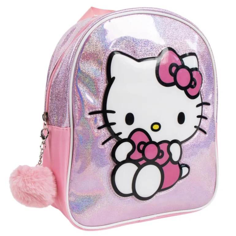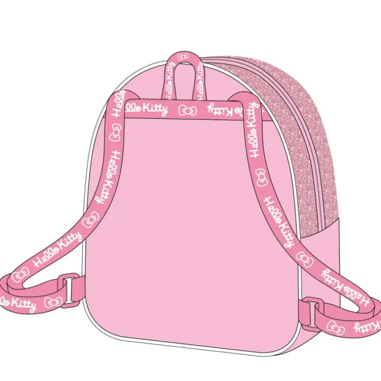 Descubre la mochila infantil Hello Kitty, perfecta para acompañar a los más pequeños en sus aventuras diarias. Esta encantadora mochila presenta un diseño resplandeciente en tonos rosa con un acabado iridiscente que captura la luz y brilla con cada movimiento. El icónico personaje de Hello Kitty adorna el frente, aportando un toque adorable y alegre que fascinará a niños y niñas.