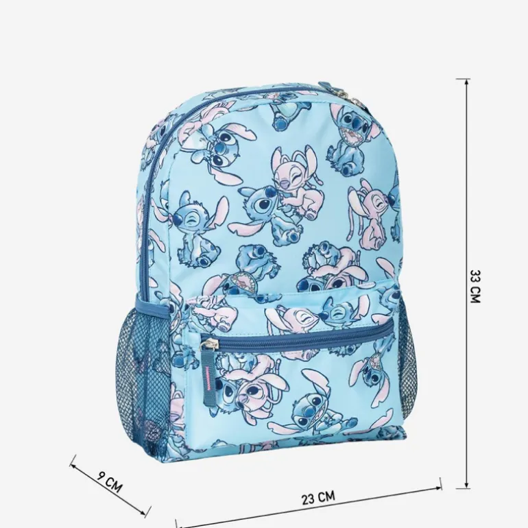 Descubre la mochila infantil ideal para los pequeños aventureros. Esta mochila es de un encantador color azul claro con un vibrante estampado del querido personaje Stitch. Diseñada en un resistente 100% poliéster, garantiza durabilidad y resistencia en el uso diario.