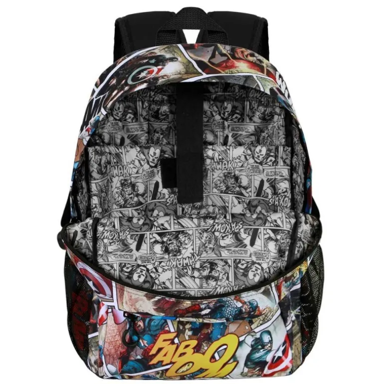 Descubre la mochila urbana ligera de Marvel Capitán América Comic Fight FAN 2.2 en un vibrante diseño multicolor, ideal para fanáticos de este icónico superhéroe. Esta mochila presenta un llamativo estampado de cómics del Capitán América, incluyendo su distintivo escudo. Cuenta con un compartimento principal espacioso y un interior con forro acolchado para proteger tus dispositivos electrónicos. Además, dispone de dos bolsillos frontales y dos bolsillos laterales de malla para un almacenamiento adicional. Las correas al hombro acolchadas y ajustables aseguran comodidad durante su uso, mientras que la cinta trasera adaptable a trolley añade un plus de versatilidad. Sus dimensiones son 44 x 31 x 18 cm, perfectas para el uso diario o como regalo original para fans de Marvel.