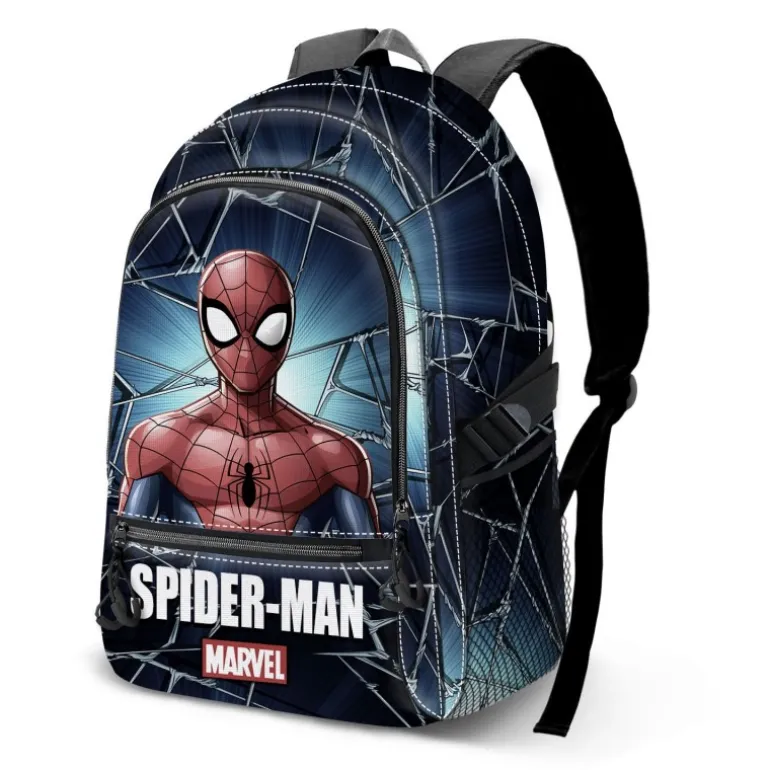 La mochila Marvel Spiderman Maximum Fight FAN 2.2 en color azul es ideal para los apasionados del universo Marvel. Destaca su diseño vibrante con la imagen icónica de Spiderman sobre un fondo azul con detalles de telarañas, haciendo que esta pieza sea tanto llamativa como funcional. Con un compartimento principal, dos bolsillos frontales y dos laterales de malla, ofrece amplio espacio de almacenamiento. El interior está forrado y cuenta con un bolsillo acolchado para proteger tus dispositivos electrónicos. Las correas acolchadas y ajustables garantizan comodidad, mientras que la cinta trasera permite adaptarla fácilmente a un trolley. Sus dimensiones de 44 x 31 x 18 cm hacen de esta mochila un accesorio urbano y ligero, perfecto tanto para el uso escolar como para el día a día.