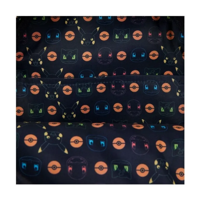 Con un estampado de adorables caras de Pokémon y un bolsillo frontal con cierre con botón metálico, esta mochila es ideal para un look casual. Sus correas ajustables y acolchadas aseguran comodidad durante todo el día. Además, su interior forrado con patrones de Poké Balls añade un toque especial que encantará a los coleccionistas.