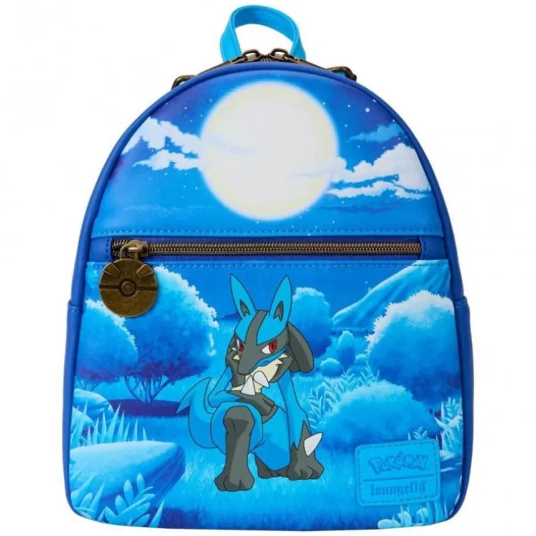 La Mochila Mini Lucario Pokémon por Loungefly es una obra maestra para los fans de Pokémon. Con un diseño vibrante que presenta a Lucario bajo un cielo nocturno iluminado por la luna, esta mochila captura la esencia aventurera del mundo Pokémon. Hecha de nylon de alta calidad, ofrece durabilidad y estilo. Sus dimensiones de 23 x 12 x 27 cm la hacen perfecta para llevar lo esencial de manera compacta y cómoda.