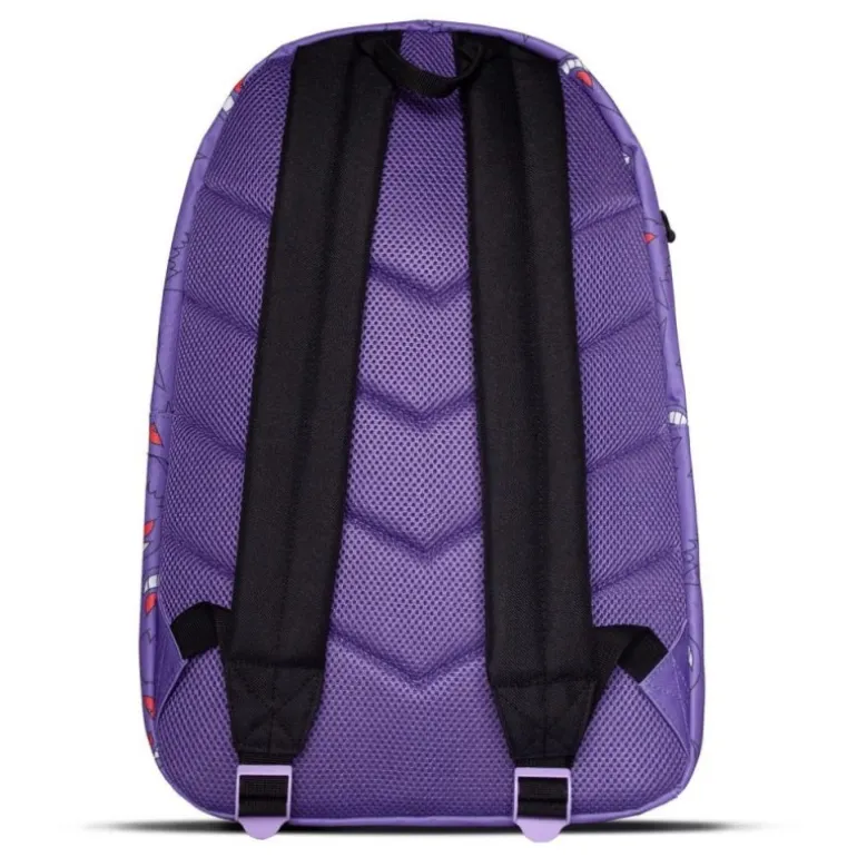 Descubre la mochila Pokémon Gengar All Over Print, un accesorio imprescindible para los amantes de Pokémon. Con un diseño vibrante y audaz, esta mochila muestra un patrón repetido del divertido y misterioso Gengar sobre un fondo morado, capturando la esencia del personaje con sus características caras sonrientes y ojos rojos. Fabricada en 100% poliéster, garantiza durabilidad y resistencia, ideal para el uso diario.