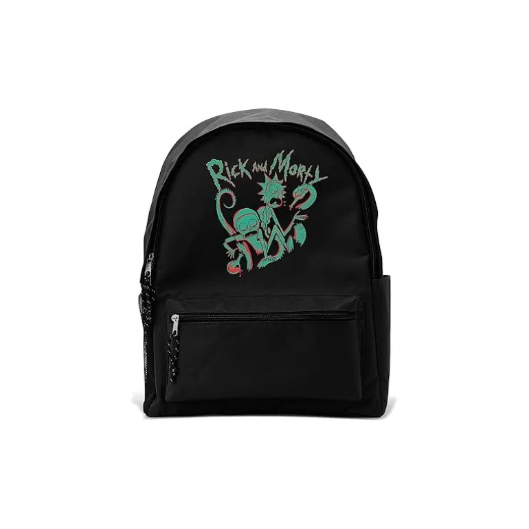 Descubre la mochila Rick & Morty, un accesorio imprescindible para los verdaderos entusiastas de las aventuras de este icónico dúo. Con un diseño audaz, esta mochila presenta a Rick y Morty en una ilustración llamativa en el frontal, sobre un fondo negro que resalta los detalles en verde y rojo, capturando a la perfección la esencia del programa.