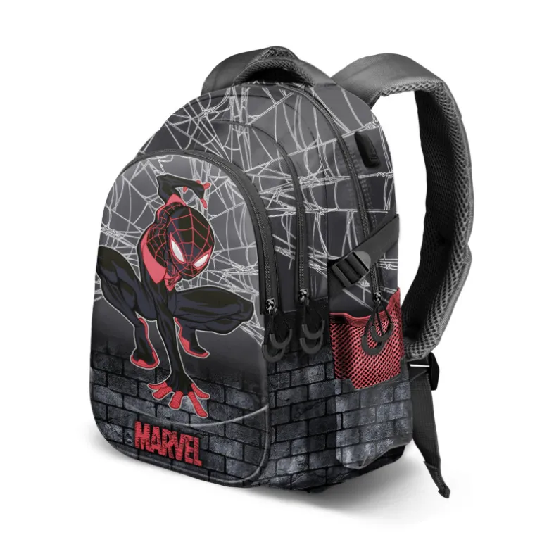 La mochila Spiderman Gris es un producto de alta calidad que ofrece gran capacidad de almacenamiento con sus tres compartimentos y dos bolsillos de malla. Su forro interior cuenta con un bolsillo acolchado para dispositivos electrónicos y un puerto USB, lo que la convierte en una mochila moderna y funcional.