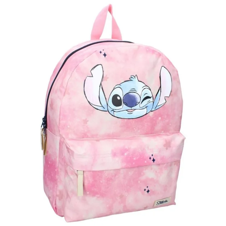 Descubre la encantadora mochila Stitch Unbearably Cool Pink, un accesorio imprescindible para los amantes de Lilo & Stitch. Confeccionada con un vibrante diseño en tonos rosa y estampado de Stitch en la parte frontal, esta mochila es perfecta para aquellos que buscan destacar con un estilo original y divertido.