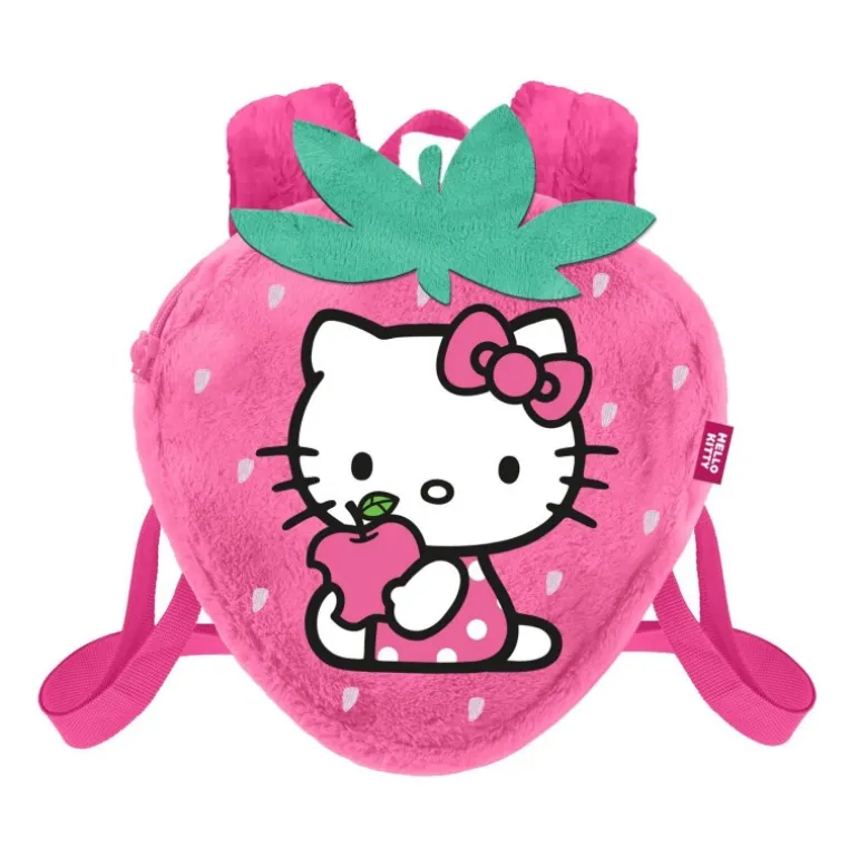 La Mochila Hello Kitty Strawberry es un complemento encantador diseñado para los amantes de este icónico personaje. Hecha de un suave material de peluche, esta mochila presenta un diseño en forma de fresa que resalta el divertido y tierno estampado de Hello Kitty sosteniendo una manzana. En un vibrante color rosa, esta mochila no solo es una declaración de estilo, sino también increíblemente funcional.