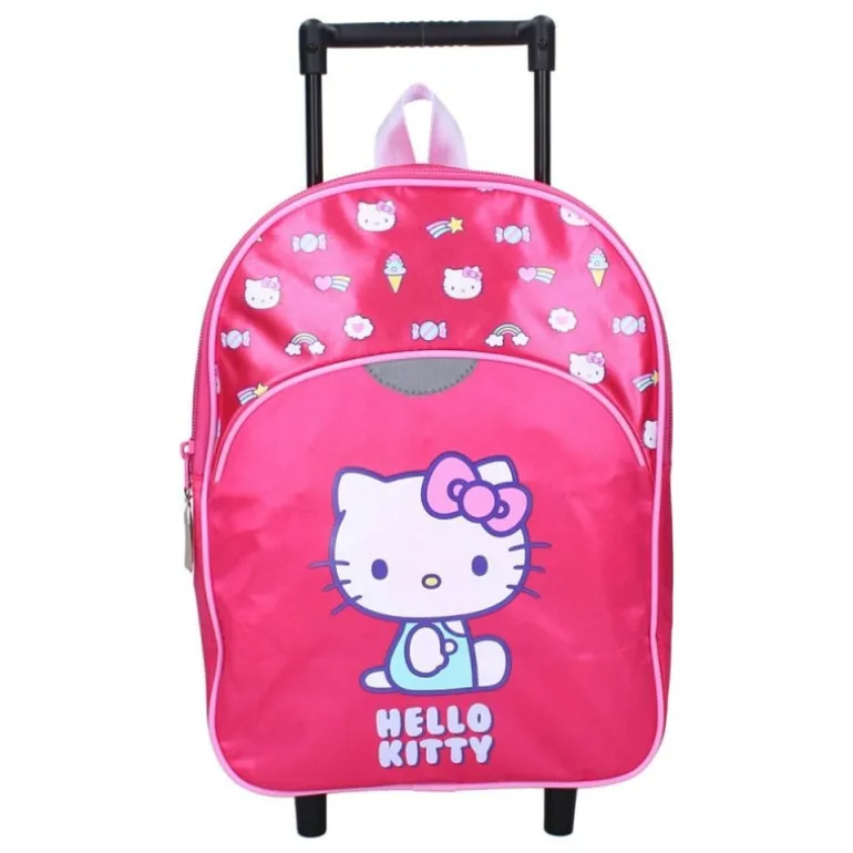 Descubre la Mochila Trolley Hello Kitty Follow The Rainbow, un accesorio imprescindible para las pequeñas fans de Hello Kitty. Con un diseño adorable en tonos rosados, esta mochila destaca por el icónico estampado de Hello Kitty rodeado de arcoíris y dulces. Fabricada con material 100% poliéster, asegura durabilidad y resistencia al uso diario.