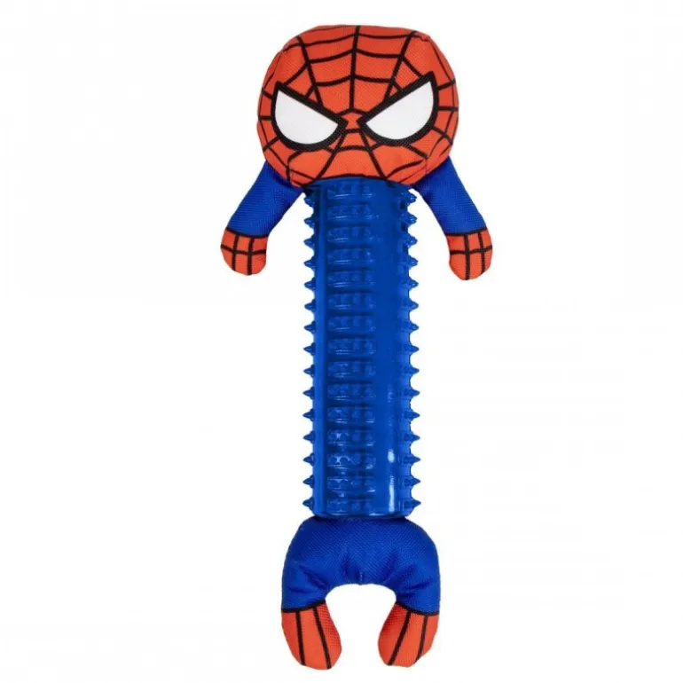 Este mordedor para perro destaca por su diseño icónico de Spiderman. La parte superior del juguete está confeccionada con una cabeza de Spiderman en tela roja con detalles de telaraña y ojos blancos, mientras que el cuerpo es de color azul con textura rugosa para mejorar la higiene dental de las mascotas. Sus materiales de alta calidad, como el TPR y poliéster, garantizan resistencia y durabilidad.