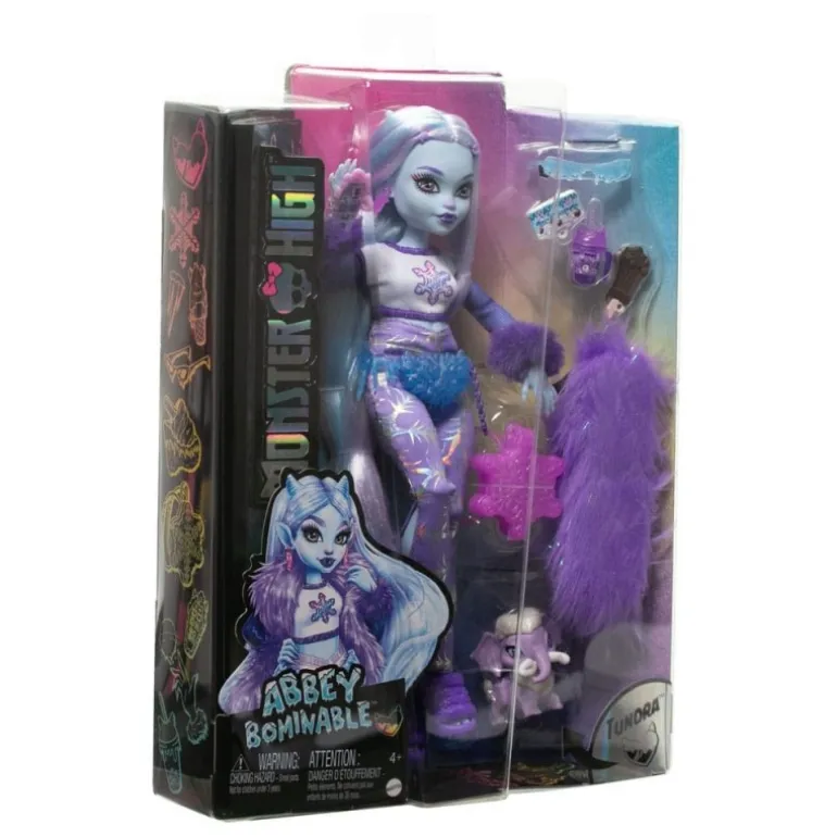 ¡Descubre la fascinante muñeca Abbey Bominable de Monster High, hija del icónico Yeti! Con un diseño único inspirado en las frías cumbres del Himalaya, Abbey presenta una figura articulada de 24,3 cm con detalles espectaculares. Destaca su piel azulada y su pelo largo multicolor adornado con accesorios invernales.