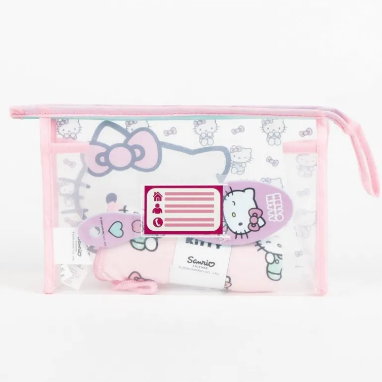 Descubre el encantador Neceser de Aseo Hello Kitty, perfecto para las pequeñas aventuras de tus hijos. Este set, en un colorido estilo rosa y lavanda, incluye artículos esenciales para el cuidado personal, con el toque adorable de Hello Kitty.