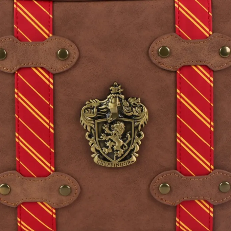 Este elegante neceser de aseo de viaje está inspirado en la prestigiosa casa Gryffindor del universo de Harry Potter. Fabricado con 100% PU, este neceser de color marrón combina estilo y funcionalidad. Presenta un diseño distintivo con dos correas rojas con detalles en dorado y el escudo de Gryffindor en el centro, lo que lo hace ideal para los fanáticos de la serie.